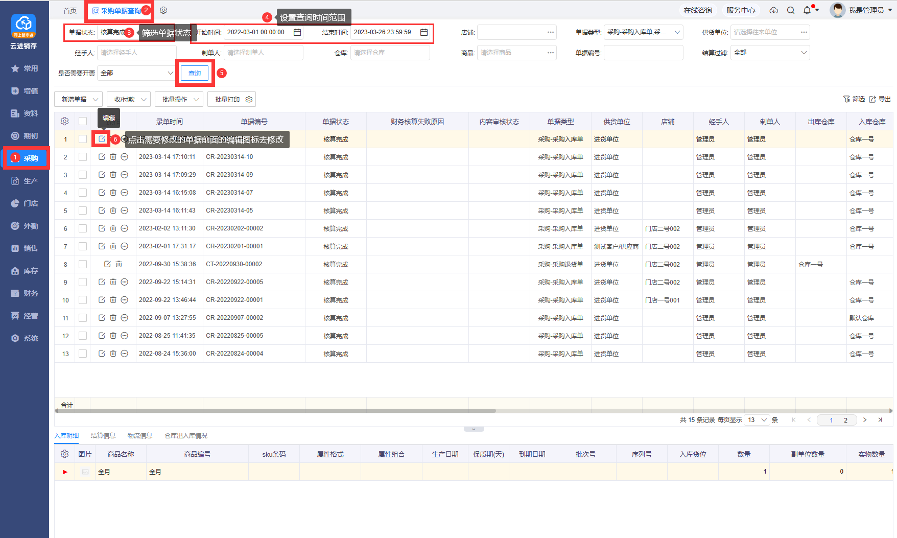 然后:找到对应的单据,点击该单据前面的编辑图标,便可修改该单据后重新保存。