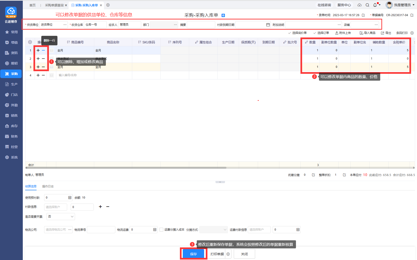 您好,已经保存的采购单支持修改,具体步骤如下: